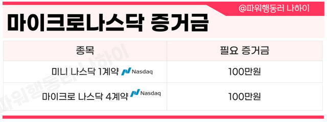 마이크로 나스닥의 경우 4계약을 할 경우 100만원으로 투자가 가능합니다.