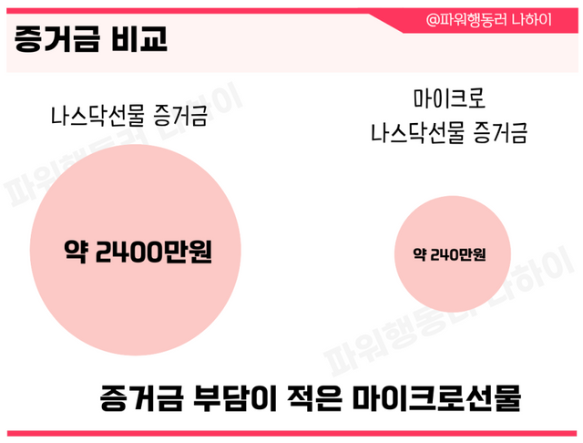 예를 들어, 나스닥 선물의 경우 약 2,400만원의 상당한 증거금이 필요하지만, 마이크로 나스닥 선물은 그 규모가10분의 1로 줄어들어 훨씬 적은 증거금으로 거래가 가능합니다.
