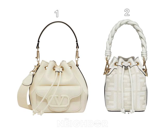 1 Valentino Garavani 톤온톤의 V 로고가 장식된 외부 포켓이 있는 로코 버킷백 321만원.