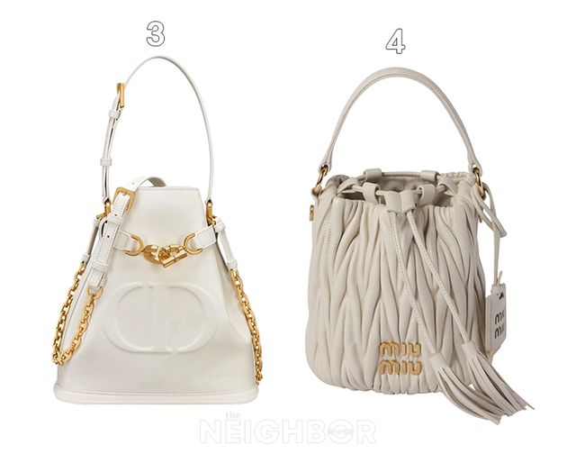 4 Miu Miu 로고 장식과 태슬 드로스트링이 특징인 나파 가죽 소재 마틀라세 버킷백 225만원.