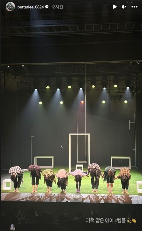 이나은은 4일 자신의 인스타그램 스토리에 사진 한 장을 공유했다. 사진 속에는 연극 '템플' 관람 인증샷과 함께 "기적 같은 아이"라는 짧은 문구가 쓰여있었다.