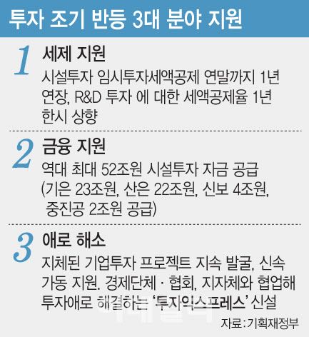 또 범부처 지역투자지원 태스크포스(TF)를 중심으로 기업투자 프로젝트를 지속 발굴하고 신속 가동도 지원한다는 계획이다. 경제단체·협회, 지자체와 협업해 투자 애로를 해결하는 ‘투자 익스프레스’를 이달 중 신설하고 오는 3월 반도체·조선 등 주력산업, 데이터·바이오 등 신성장 전략산업 등을 중심으로 2차 투자 활성화 대책을 마련한다.
