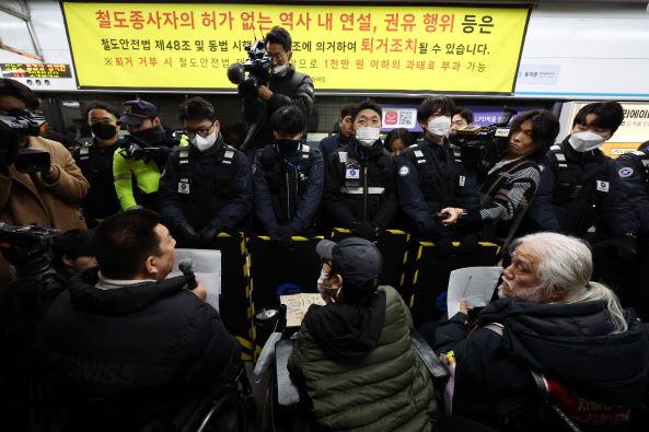 경찰에 따르면 이 대표는 이날 오전 8시부터 서울 지하철 4호선 혜화역 승강장에서 서울시의 중증장애인 맞춤형 공공일자리 예산 삭감과 노동자 해고에 반발하며 시위를 진행했다.