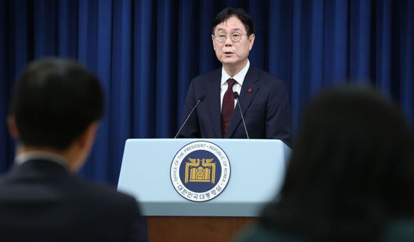 이관섭 대통령실 비서실장이 5일 용산 대통령실 청사에서 이른바 '쌍특검법'의 윤석열 대통령 거부권 행사 관련 브리핑을 하고 있다. ⓒ 연합뉴스