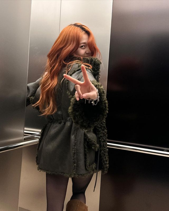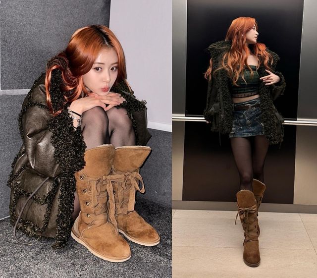 르세라핌 허윤진, 무스탕+양털 부츠로 멋낸 '핫걸'
