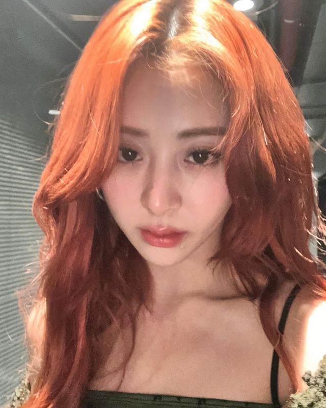 그녀는 강렬한 오렌지빛 웨이브 헤어로 섹시하고 발랄한 매력을 뽐냈다.