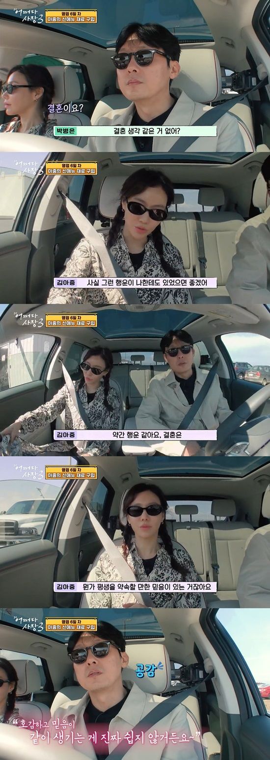 운전 중 박병은은 "넌 어때? 결혼생각 같은 거 없어?"라고 물었다.