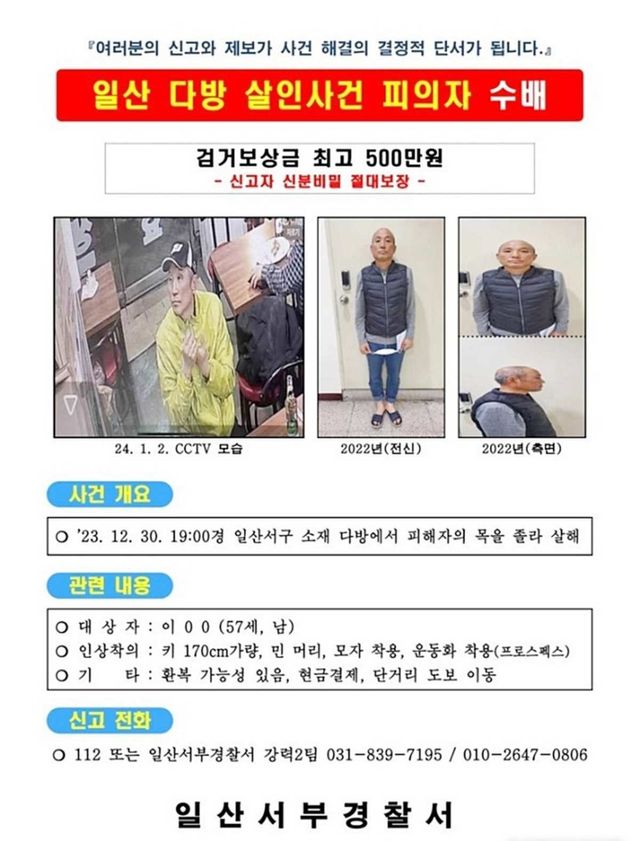 일산 다방 살인사건 피의자 공개수배 전단. / 일산서부경찰서 제공