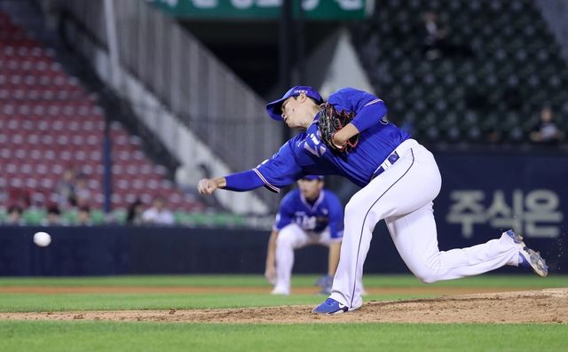 김대우가 지난해 6월 13일 오후 서울 송파구 잠실야구장에서 열린 프로야구 '2023 신한은행 SOL KBO리그' 삼성 라이온즈와 LG 트윈스의 경기 7회 말에서 역투하고 있다. / 뉴스1
