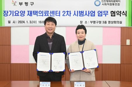 [파이낸셜경제=김윤정 기자] 부평구는 지난 3일 구청 영상회의실에서 인천평화의료복지사회적협동조합과 ‘장기요양 재택의료센터 2차 시범사업’ 관련 업무협약을 체결했다.