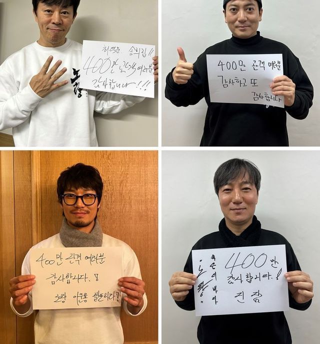 400만 돌파 소식에 김한민 감독을 비롯해 김윤석, 정재영, 김성규, 이규형, 이무생, 최덕문, 박명훈, 박훈, 정기섭 등 주요 배우들이 손편지를 직접 작성해 관객들에게 감사 인사를 전했다.