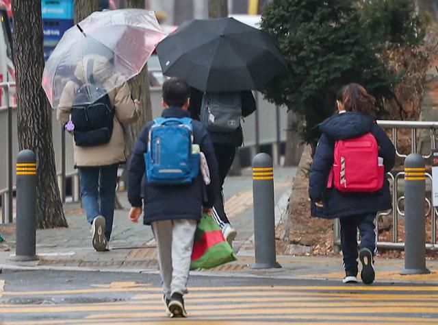3日上午,小学生们正在前往学校。【图片提供 韩联社】