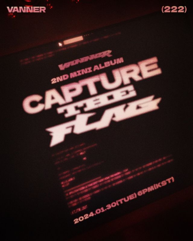 공개된 커밍순 이미지에는 다크한 색감의 배경에 전파수 느낌을 주는 붉은 네온 사인같은 강렬한 타이포그래피로 VANNER(배너)의 두 번째 미니 앨범명과 컴백일이 담겼다. 상단에는 두 번째 미니 앨범과 다양한 의미를 내포하는 듯한 ‘222’라는 숫자가 연속적으로 나열돼 있어서 ‘CAPTURE THE FLAG’에 담길 메시지와 콘셉트에 대한 궁금증을 자극했다.