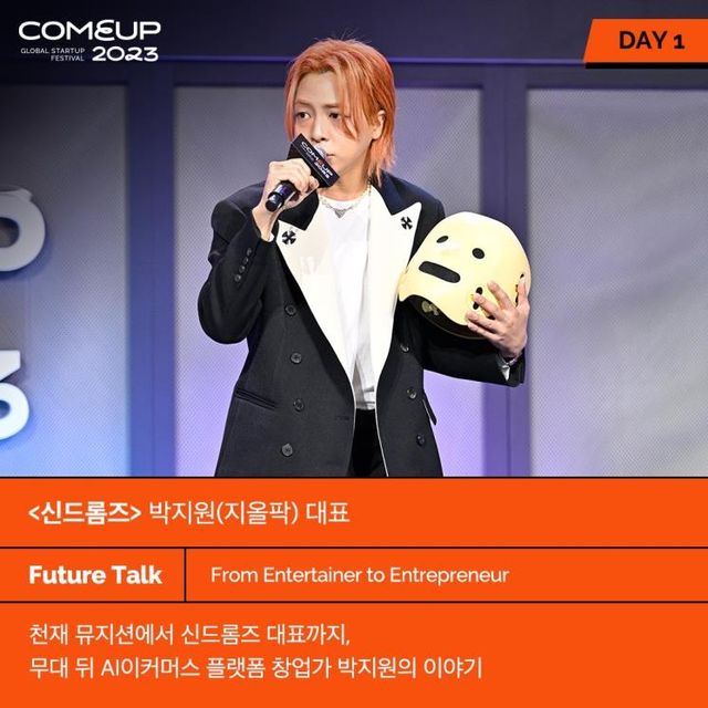 지올팍은 지난달 국내 최대 규모 스타트업 행사인 〈컴업 2023〉에 ‘신드롬즈’ 대표 박지원으로 참여해 연설했습니다. 그는 스피치에서 그가 과거 실리콘밸리에서 음악 플랫폼을 창업하려 했었다는 사실을 밝히며 그에게 창업이 굉장히 익숙하다고 말했습니다.