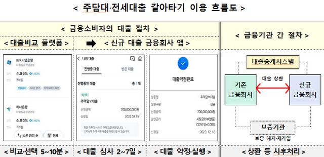 [이데일리 정병묵 기자] 9일부터 아파트 주택담보대출(주담대), 31일부터 전세대출을 온라인 비교 플랫폼을 통해 낮은 금리로 이동할 수 있게 된다. 대출금액이 큰 아파트 주담대와, 서민·무주택자의 주요 주거금융상품인 전세대출을 편리하게 낮은 금리로 이동할 수 있게 되면서 금융소비자의 편익이 제고될 것으로 기대된다.