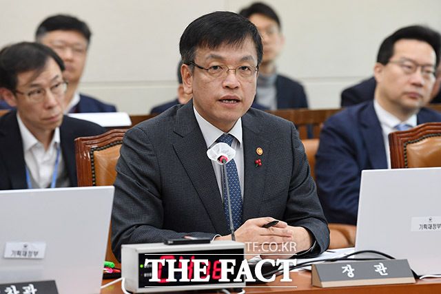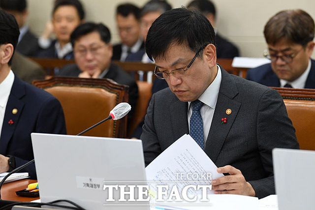 기재위 전체회의 참석해 의원 질의에 답하는 최 부총리.