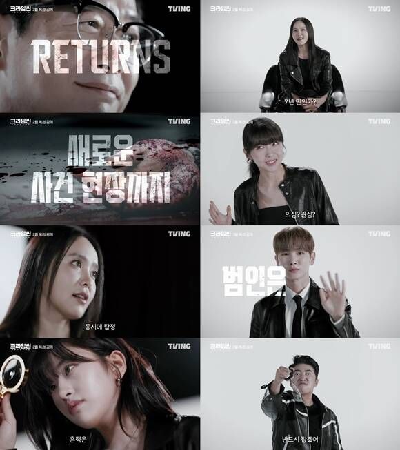 티빙은 9일 오리지널 예능프로그램 '크라임씬 리턴즈'가 2월 공개된다는 소식과 함께 컴백 포스터와 예고편을 공개했다. 사진과 영상에는 추리 전쟁을 시작하는 플레이어들의 모습이 담겼다.