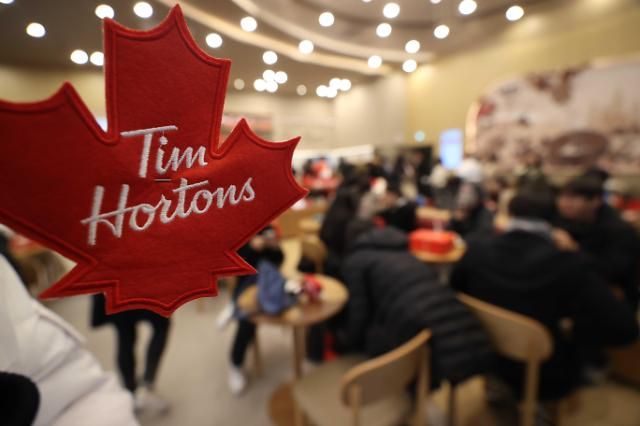天好咖啡(Tim Horton)位于首尔江南新论岘站的门店。【图片提供 韩联社】