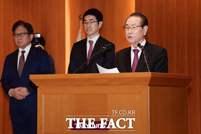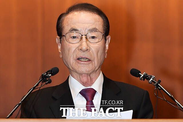 [더팩트ㅣ서예원 기자] 윤세영 태영그룹 창업회장이 9일 오전 서울 영등포구 태영건설 사옥에서 열린 '태영그룹 워크아웃' 관련 추가 자구안 발표 기자회견에 참석해 입장을 밝히고 있다.