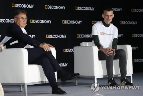▲ 지난 2019년 서울에서 열린 행사에 참석한 누리엘 루비니 교수(왼쪽). 오른쪽은 이더리움 고안자인 비탈릭 부테린 |
