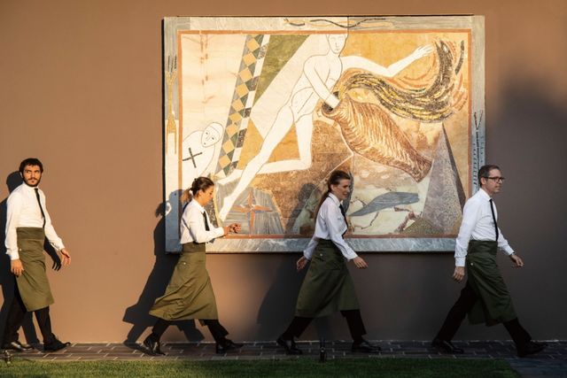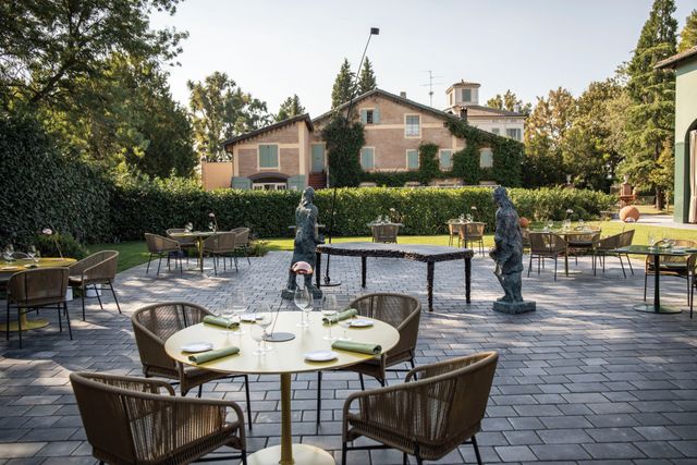 이탈리아 미식을 세계 중심으로 끌어올린 마시모 보투라는 요리사로서 얻을 수 있는 대부분의 최고 영예를 안았다. ‘월드 베스트 레스토랑 50’ 1위와 미쉐린 3스타를 거머쥐었고, 28년 된 오스테리아 프란체스카나는 여전히 반년을 기다려야 예약이 가능하다. 마시모 보투라라는 이름은 페라리, 파르미지아노 레지아노, 람브루스코 와인과 함께 명실공히 모데나를 상징하는 브랜드로 거듭났다. 60세인 그는 지금도 모데나에서 전원적 삶을 영위하며 자신만의 미식 문화를 만들어가고 있다. 최근에는 모데나 외곽 시골 마을에 알 가토 베르데라는 레스토랑을 새롭게 오픈했다. 그의 아내 라라 길모어와 함께 운영하는 호텔 카사 마리아 루이자에 들어선 공간이다. 카사 마리아 루이자는 버려진 저택을 개조한 호텔로, 포도밭과 들판으로 둘러싸여 목가적 풍경을 자아낸다. 실내에는 아이웨이웨이·산드로 치아 등 거장들의 작품이 가득해 갤러리를 방불케 하며, 200년 수령의 나무로 둘러싸인 수영장, 셰프의 LP 컬렉션으로 채운 청음실, 테니스 코트 등을 갖춰 은밀한 별장으로 휴가를 온 듯한 기분을 느끼게 한다. 최근에는 패트릭 뎀시, 아담 드라이버 등 영화 <페라리>에 출연한 배우들이 이곳에서 함께 휴가를 보내기도 했다. 레스토랑 알 가토 베르데는 저택의 안뜰을 복원해 만든 공간으로, 오래된 마구간을 개조했다. 정원은 산드로 키아, 밈모 팔라디노, 짐 다인의 조각상이 우아한 몸짓으로 활기를 더한다. 그 옆에는 1400개의 발사믹 배럴이 쿰쿰한 냄새를 풍기며 숙성 중이다.