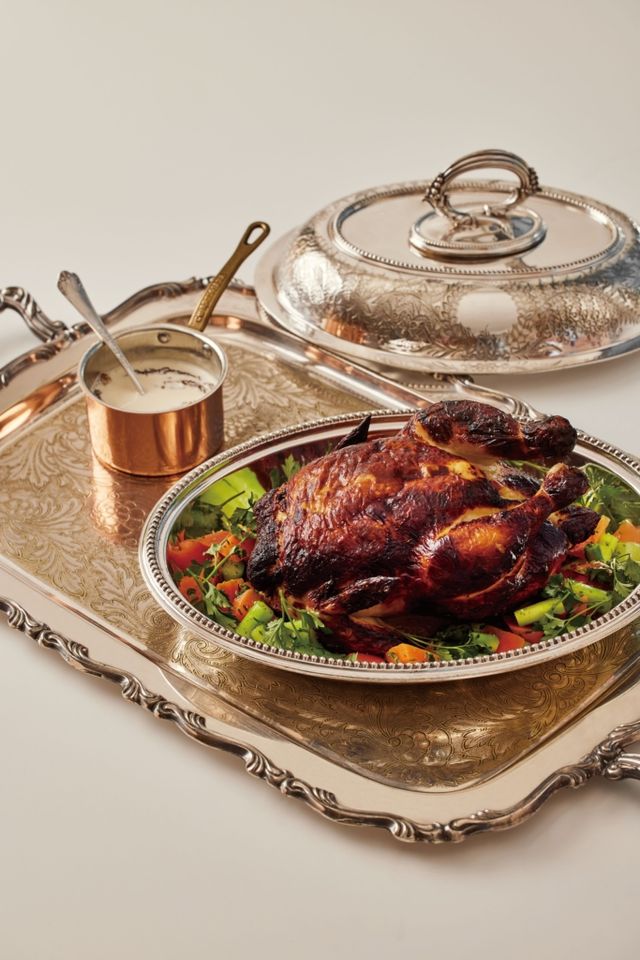 껍질과 살 사이에 트러플 무스를 채워 굽는 로스트 치킨.