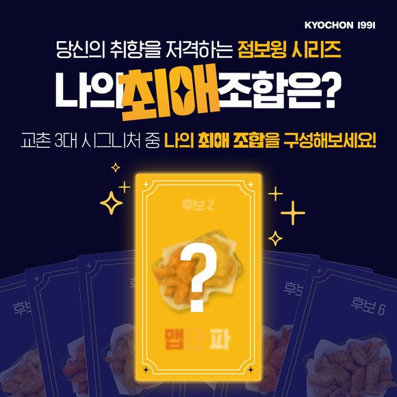 이달 31일까지 진행되는 이번 행사는 교촌치킨앱 회원을 대상으로 진행되며 △반반점보윙(교촌/레드, 교촌/허니, 레드/허니) △교촌점보윙 △레드점보윙 △허니점보윙 6가지 점보윙 시리즈 중 '최애'(가장 좋아하는) 조합을 공유하는 이벤트다.