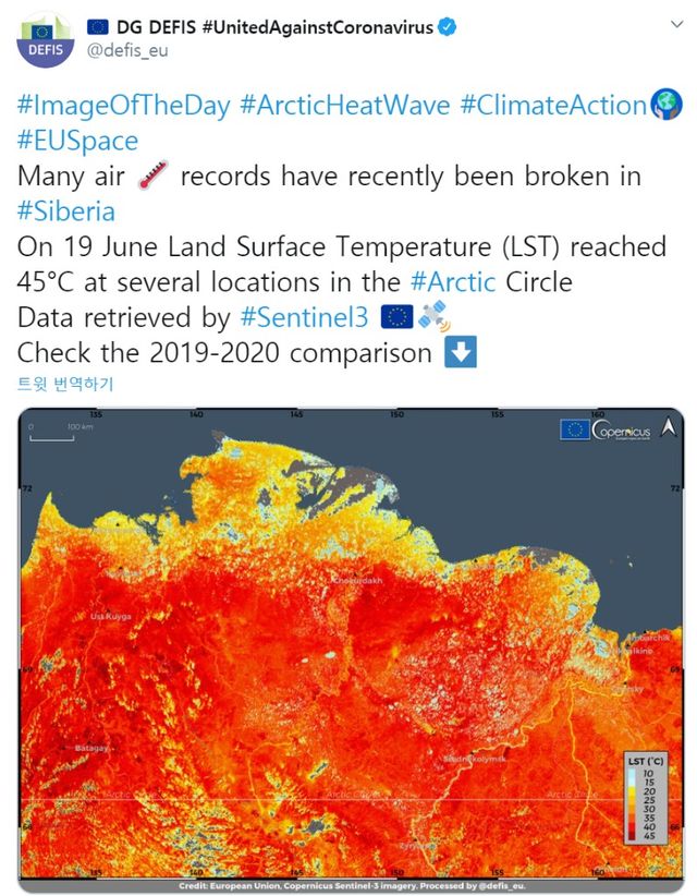 시베리아 지역이 관측 역사상 처음으로 섭씨 45 까지 치솟았다고 합니다. 온난화의 여파로 시베리아의 눈이 녹으면 그 눈 밑에 잠들어 있던 고대 바이러스와 메탄이 외부로 유출될 가능성이 있어 사람들이 두려움에 떨고있다고 합니다.