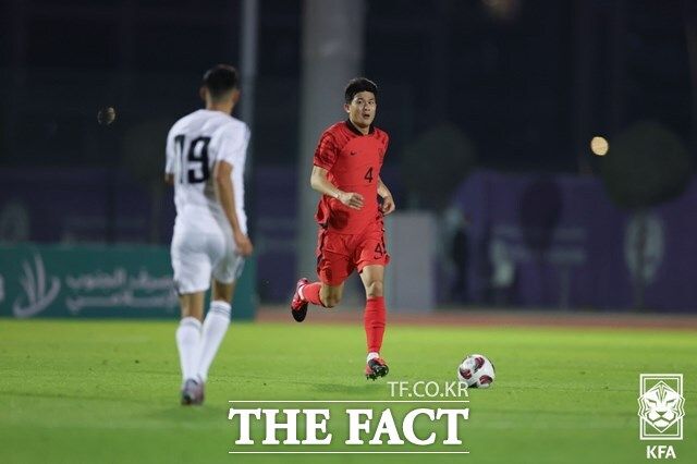 후방 수비라인을 든든하게 지키며 클린스만호의 7경기 연속 무실점을 이끌고 있는 센터백 김민재./아부다비=KFA