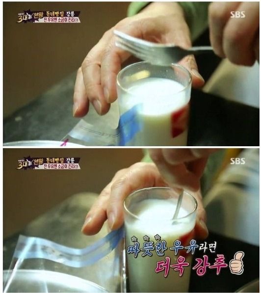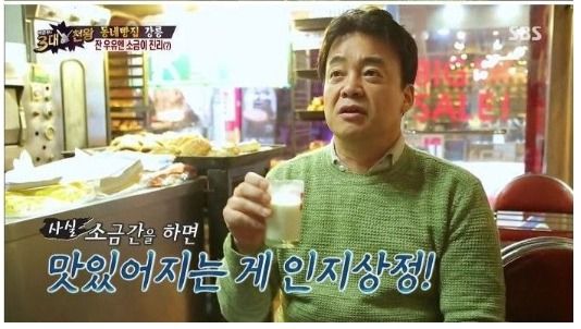우유도 알고보면 고깃국물이라며 소금간을 하면 맛있어진다며 소금을 탄다는 백종원씨, 오늘 집에 가면 한 번 해봐야겠습니다.