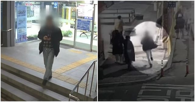공개된 폐쇄회로(CC)TV 영상 속에는 40대로 추정되는 남성의 모습이 보였다. 계단 위에 서 있던 남성 A씨는 휴대전화를 보는 척하더니 여성 보행자가 지나가자 재빨리 계단에서 내려왔다.
