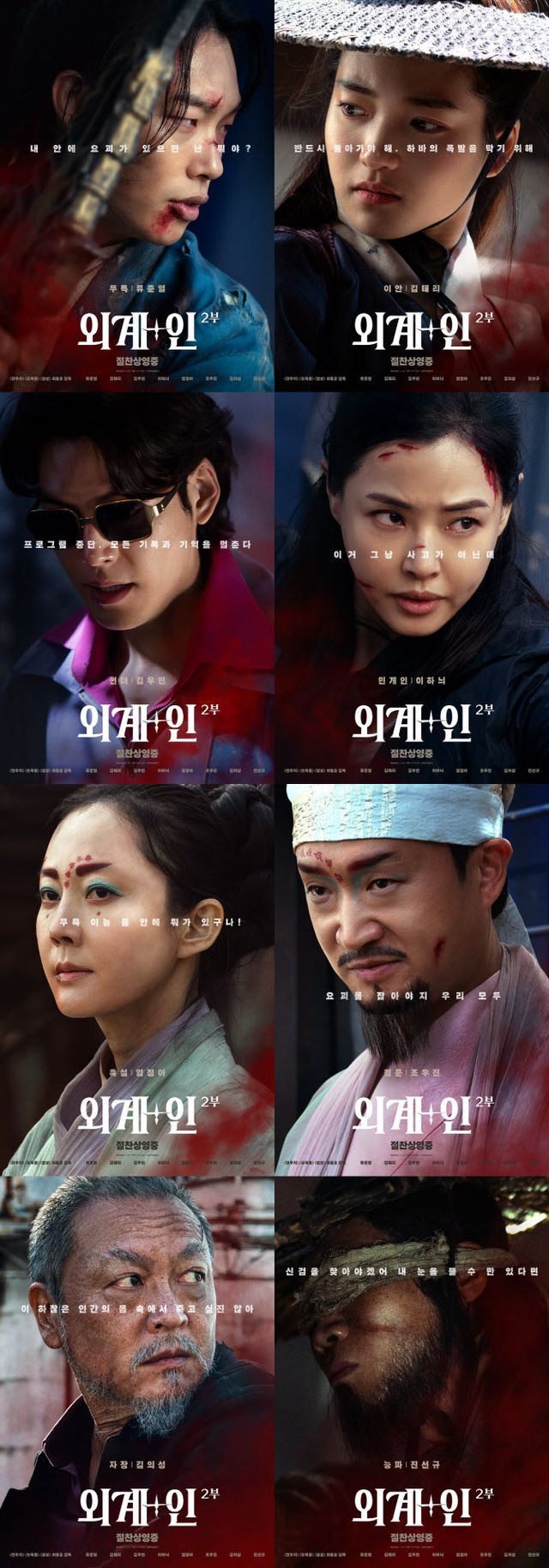 [이데일리 스타in 김보영 기자] 대세 배우들의 시너지와 스펙터클한 액션, 독창적인 볼거리로 2024년 한국영화 첫 박스오피스 1위를 기록하며 전 세대 관객들을 사로잡은 영화 ‘외계+인’(감독 최동훈) 2부가 캐릭터들의 더욱 다채로워진 매력을 담은 2차 캐릭터 포스터 8종을 11일 공개했다.