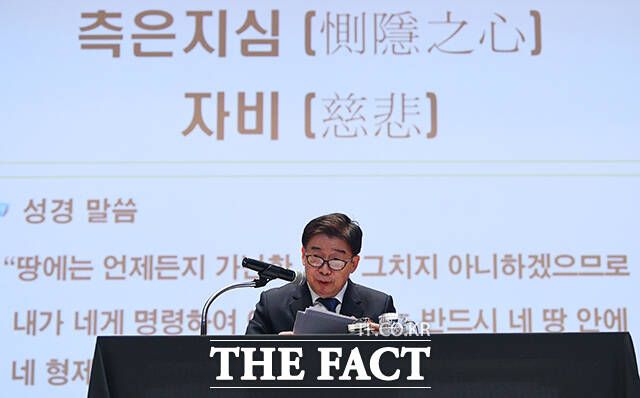 [더팩트ㅣ세종=이동률 기자] 유철환 신임 국민권익위원장이 11일 오전 세종시 정부세종청사 대강당에서 열린 취임식에 참석해 취임사를 하고 있다.