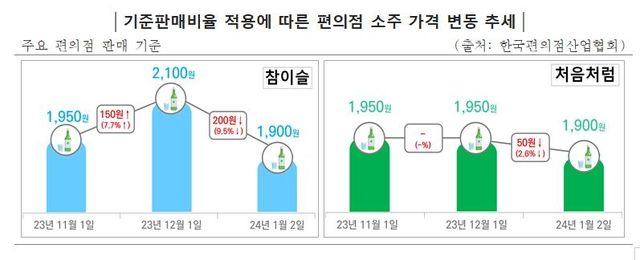 이달부터 국산 소주에 22%의 기준판매 비율이 적용되면서 소주 판매가격이 병당 최대 200원까지 내려가는 등 가격 인하 효과가 나타났다고 국세청은 설명했다.
