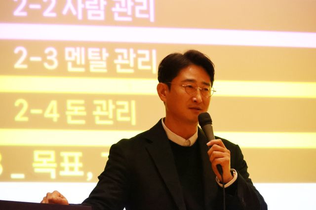 9일 오전 대전컨벤션센터에서 열린 2024 KBO 신인 오리엔테이션에서 신인 선수들을 상대로 강연하는 박용택 해설위원. 연합뉴스