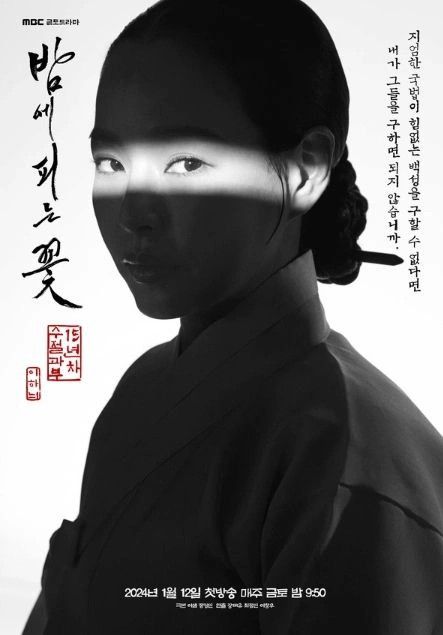 조여화는 혼례 당일 신부를 데리러 오는 길에 신랑이 갑작스럽게 죽어 초례도 치러보지 못한 15년차 수절과부다. 낮에 활짝 열린 대문 밖 세상은 언감생심, 곡기를 끊고 사당에 올라가 곡을 하거나 삼강행실도를 써 내려가는 게 일이다. 그러나 해가 지고 달이 떠오르면 비로소 진짜 조여화의 모습이 드러나니 빛보다 빠르다는 밤의 전설이 돼 도움이 필요로 한 사람들에게 구원의 손길을 내민다. 밤이면 밤마다 눈물 바람 대신 담을 넘어 백성들을 돕는 수절과부 조여화의 이중생활은 때로는 시청자들에게 유쾌함과 통쾌함을 선사하고, 때로는 가슴 벅찬 감동을 안길 전망이다. 12일 웨이브와 쿠팡플레이에서 만날 수 있다. 15세 관람가.