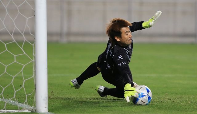 김병지 강원 FC 대표이사가 현역 시절인 2015년 5월 13일 수원월드컵경기장에서 열린 2015 하나은행 FA컵 32강전 수원 삼성과 전남 드래곤즈의 경기 승부차기에서 수원의 골을 막아내고 있다. / 연합뉴스