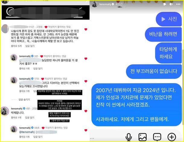 이후 조현아는 해당 누리꾼에게 보낸 듯한 DM(다이렉트 메시지)을 캡처, "비난을 하려면 타당하게 하세요. 전 부끄러움이 없습니다. 2007년 데뷔하여 지금 2024년입니다. 제가 인성과 가치관에 문제가 있었다면 진작 이 신에서 사라졌겠죠. 사과하세요. 저에게 그리고 팬들에게"라고 말했습니다.