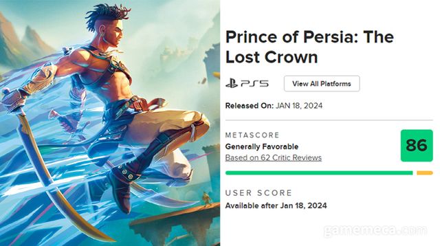 오는 18일 출시되는 페르시아의 왕자: 잃어버린 왕관이 매체 리뷰들에서 호평을 받고 있다. 12일 기준 메타크리틱에서는 모든 플랫폼에서 전문가 평점 80점대 중후반을 기록했고, 오픈크리틱에서는 추천도 93%에 87점을 달성했다.