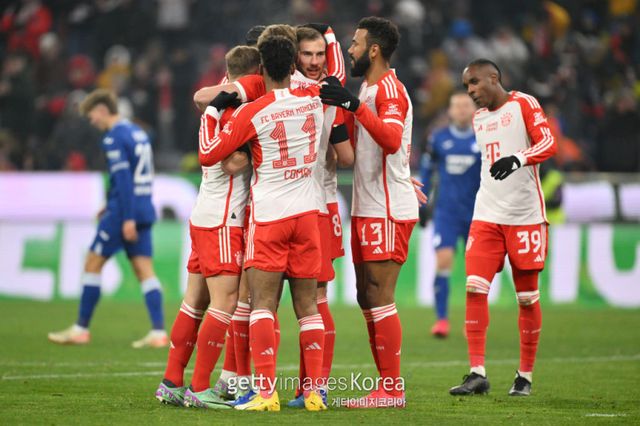 바이에른 뮌헨은 13일(한국시간) 독일 뮌헨의 알리안츠 아레나에서 열린 호펜하임과의 2023~24 독일 분데스리가 17라운드 홈경기에서 3-0 완승을 거뒀다. 이날 승리로 승점 41(13승 2무 1패)을 기록한 바이에른 뮌헨은 선두 바이어 레버쿠젠(승점 42·13승 3무)에 1점 차로 다가섰다.