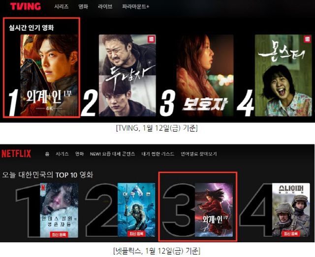 [이데일리 스타in 김보영 기자] 대세 배우들의 시너지와 스펙터클한 액션, 독창적인 볼거리로 2024년 한국영화 첫 박스오피스 1위를 기록하며 전 세대 관객들을 사로잡은 영화 ‘외계+인’(감독 최동훈) 2부가 3일 연속 박스오피스 정상을 차지한 가운데, 전작인 1부 역시 OTT 역주행 돌풍을 일으키며 화제를 모으고 있다.