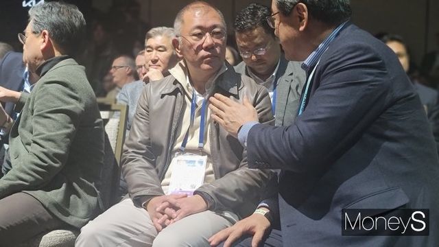 정 회장은 사촌인 정기선 HD현대 부회장도 CES 무대에서 2년 만에 만났다. 정 회장은 HD현대 전시관을 찾아 미래형 건설기계와 원격조종 휠로더 등을 살펴봤다.