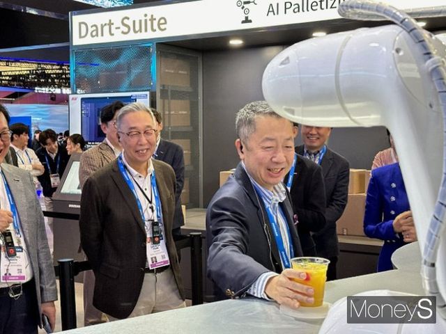 박 회장은 가장 먼저 두산 부스를 둘러봤다. 두산 부스에서 로봇이 만들어준 음료를 시음하는 등 시종일관 화기애애한 분위기를 연출했던 박 회장은 다른 회사 부스에 들어서자 진지한 표정으로 관계자의 설명을 경청했다.