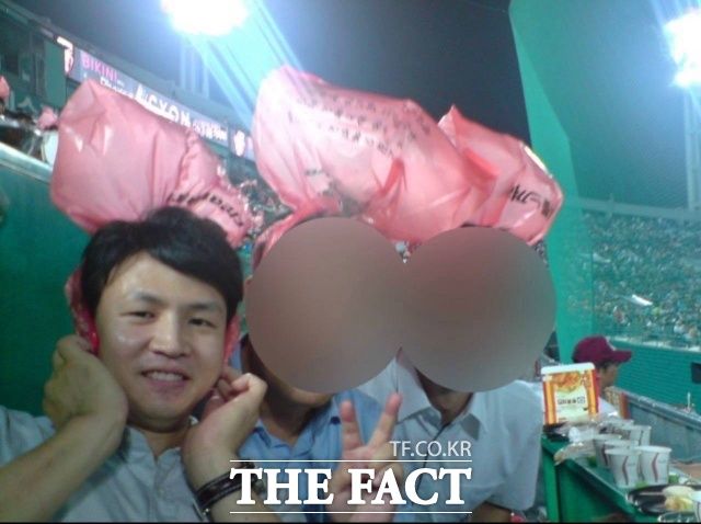 12일 한 위원장 측은 2008년 당시 한 위원장이 부산 사직야구장에서 롯데자이언츠 응원을 상징하는 주황색 봉지를 머리에 쓴 사진을 공개했다.