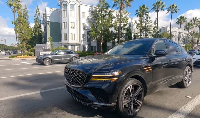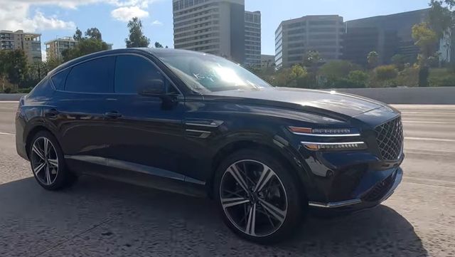 외관은 새롭게 디자인된 GV80과 마찬가지로 MLA LED 헤드램프와 더블 레이어 크레스트 그릴을 적용해 우아하면서도 대담한 실루엣을 자랑한다. 전면 디자인은 확장된 공기 흡입구, 액티브 에어 플랩, 4개의 공기흡입구로 더욱 강조돼 엔진 냉각을 향상시키는 동시에 쿠페 SUV의 대담한 매력을 자랑한다.