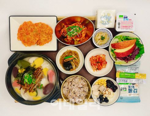 이 메뉴는 ‘일품’이고 한식, 도시락 메뉴가 더 있다. 이날 한식으로는 △사골양지오색떡국 △갑오징어볶음 △바싹김치전 △한식잡채 △도라지나물 △잡곡밥 △포기김치가 나왔다. 특식은 아니라도 새해 첫 출근날인 만큼 점심 메뉴에 각별히 공을 들인 듯했다.
