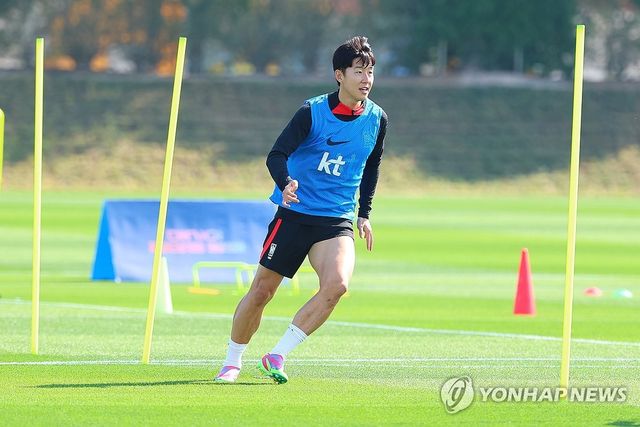 64년 만에 아시안컵 정상에 도전하는 축구대표팀 손흥민이 지난 12일(현지시간) 카타르 도하 알에글라 훈련장에서 민첩성 훈련을 하고 있다 / 연합뉴스