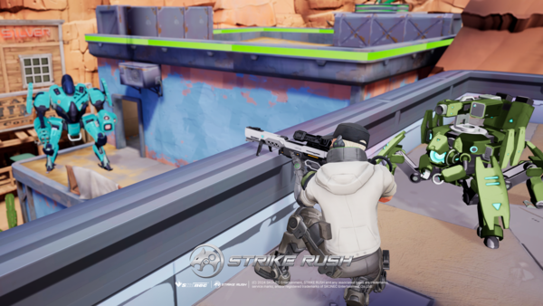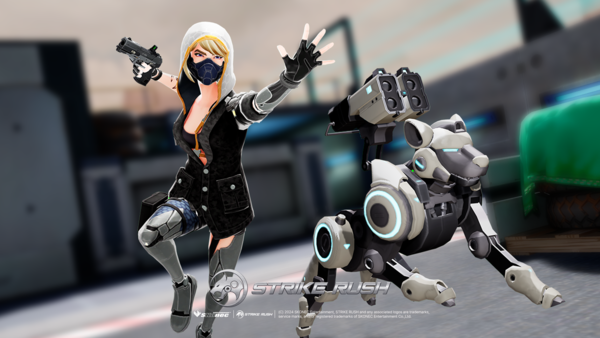 ‘스트라이크 러시’는 총 8명이 한 게임룸에 들어가 4:4 대결을 펼치는 팀플레이형 FPS게임이다. 테스트 버전에서는 각 지역을 점령하면 점수가 오르며, 이 점령도에 따라 승패가 결정되는 시스템으로 준비 됐다. 게임을 시작하면 캐릭터(블리쳐) 6종 중 한 명을 선택할 수 있다. 각기 다른 특성을 갖고 있는데, 비교적 체력이 높아 보이는 캐릭터인 제이크를 선택했다. 동시에 일종의 펫 개념인 블리츠몬을 선택해 데려갈 수 있었다. 로봇 강아지를 넘어 늑대에 가까워 보이는 캐릭터를 선택한 뒤 전장에 들어섰다.