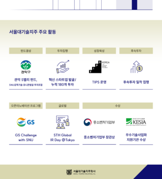 서울대학교 기술지주는 중소벤처기업부의 기술 창업 투자 프로그램 팁스(TIPS) 운영사로 지금까지 총 70개의 팁스 선정 기업을 배출했다. 이 밖에도 GS와 혁신 스타트업을 발굴하기 위한 오픈이노베이션 프로그램 ‘The GS Challenge with SNU’를 진행했다. 대기업과 협력하여 유망 스타트업 6개를 발굴해 액셀러레이팅 했다. 이를 시작점으로 양사 간 벤처 투자 교류를 이어 나갈 계획이다.