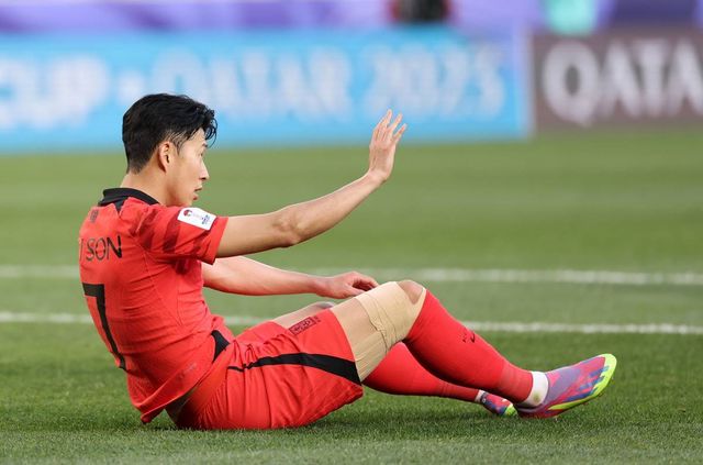 대한민국 축구대표팀 손흥민이 지난 15일(현지시간) 카타르 도하 자심 빈 하마드 스타디움에서 열린 2023 아시아축구연맹(AFC) 카타르 아시안컵 조별리그 E조 대한민국과 바레인의 경기에서 득점 찬스를 놓친 후 아쉬워하고 있다 / 뉴스1